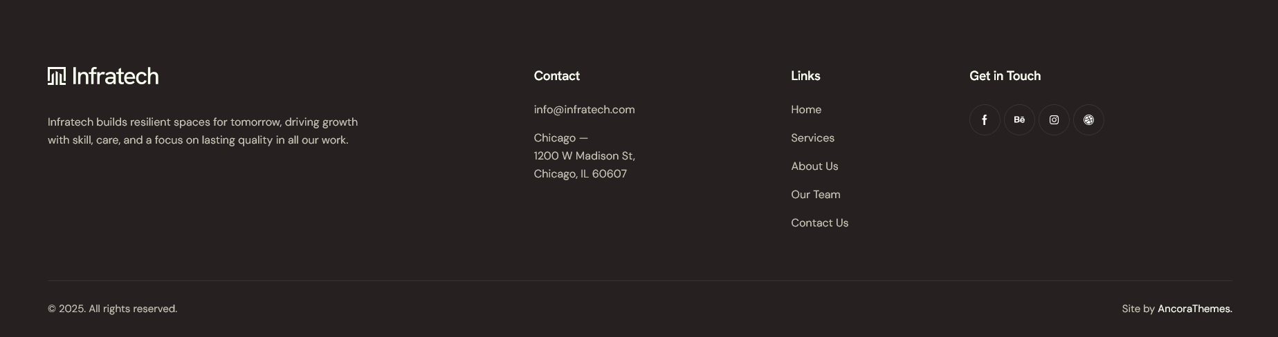 All existing demo pages and layouts are built through the Elementor Page Builder and should be customized via Elementor ONLY.