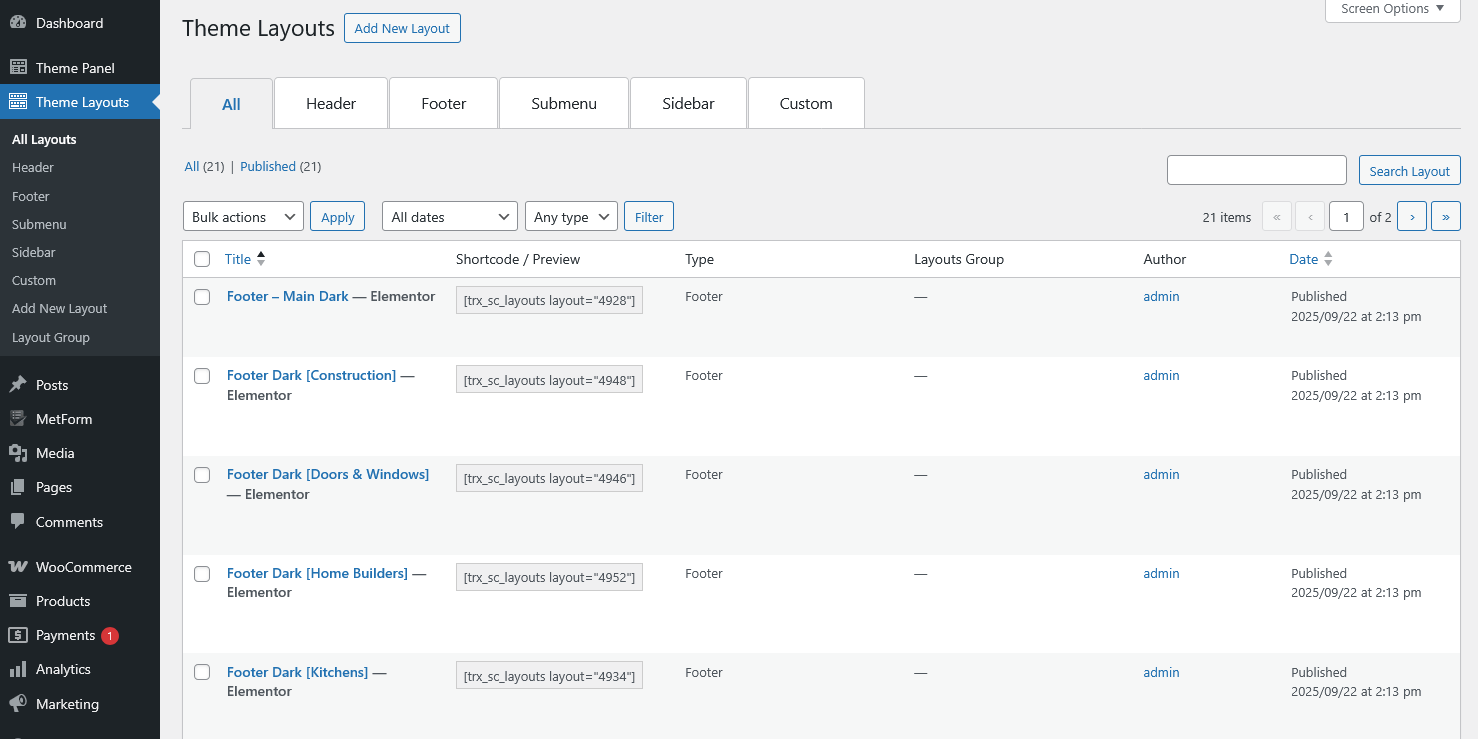 PLEASE NOTE! It is possible to switch between the page builders. Please use One page builder for creating/customizing One particular page/post/layout.