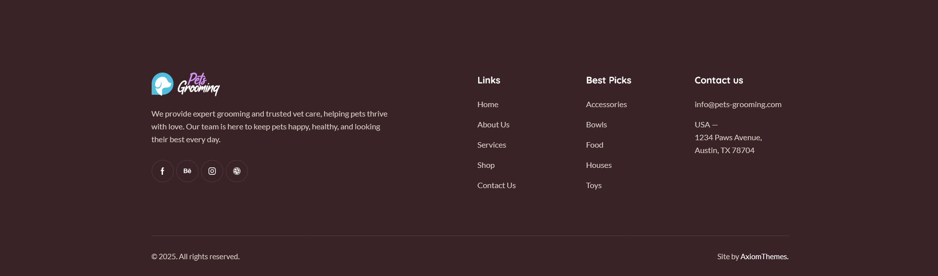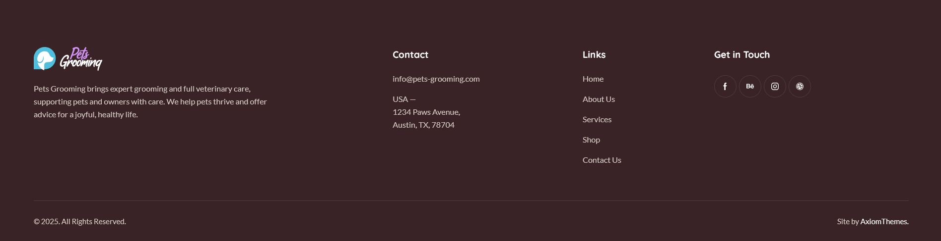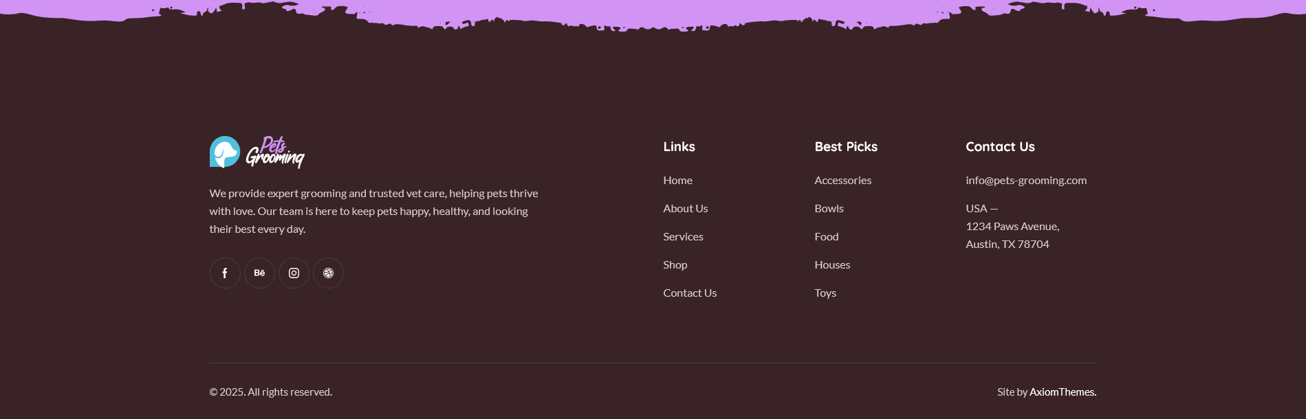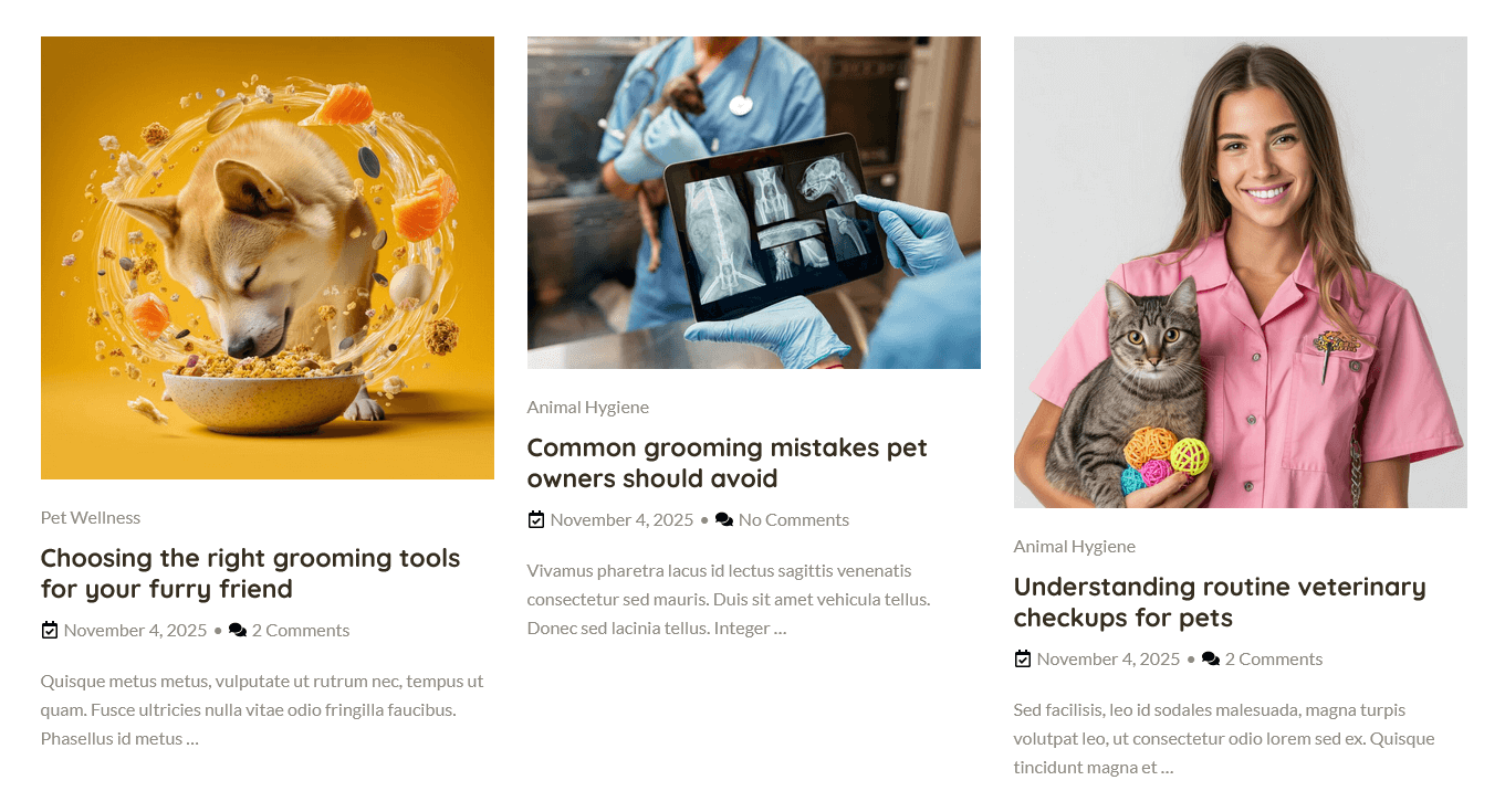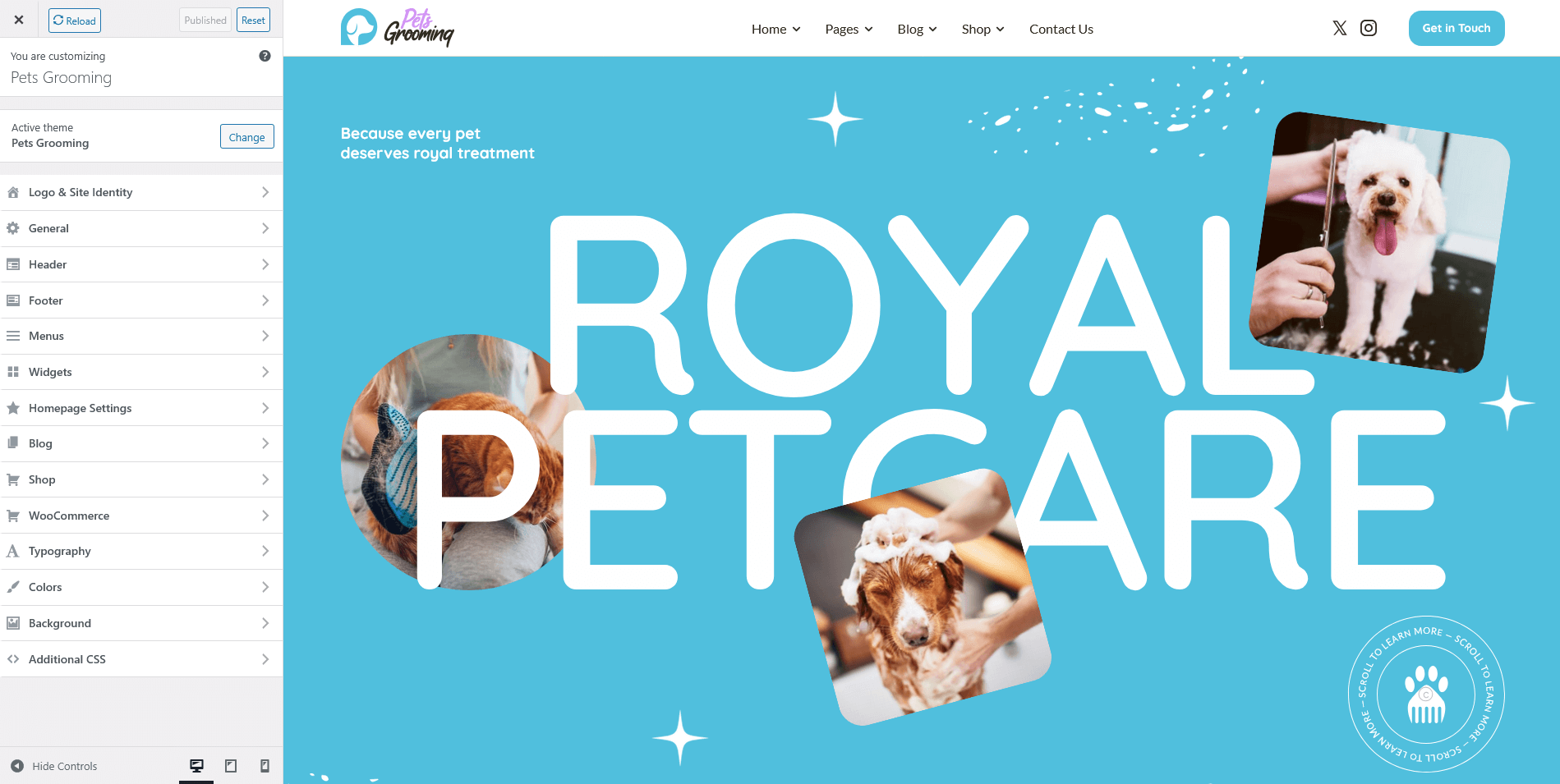 pets-grooming theme folder into /wp-content/themes.